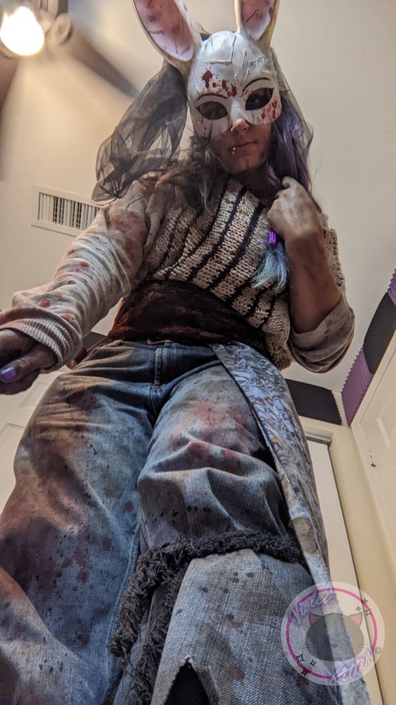My absolute favorite I have done in recent few years has been Huntress. It’s just so much fun to be scary! My favorite part of this one is probably how much of it I made/altered myself to fit the character. Hanging out in my backyard covering my outfit with fake blood and paint is a fond memory of mine. The adventure of hunting through thrift stores and fabric shops to find the perfect material is definitely the best part and seeing it all come together into a costume that is recognizably the character *chefs kiss* the best feeling!